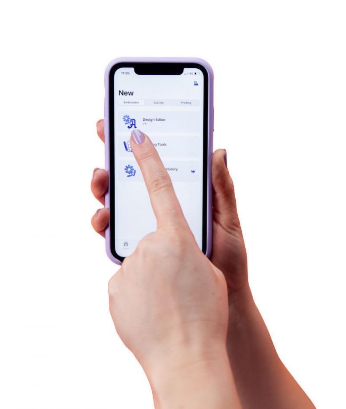 Sterowanie odbywa się przez darmowy program Artspira, który należy zainstalowac na komórce lub tablecie. Kominikacja z hafciarką odbywa się przez połączenie Bluetootch.